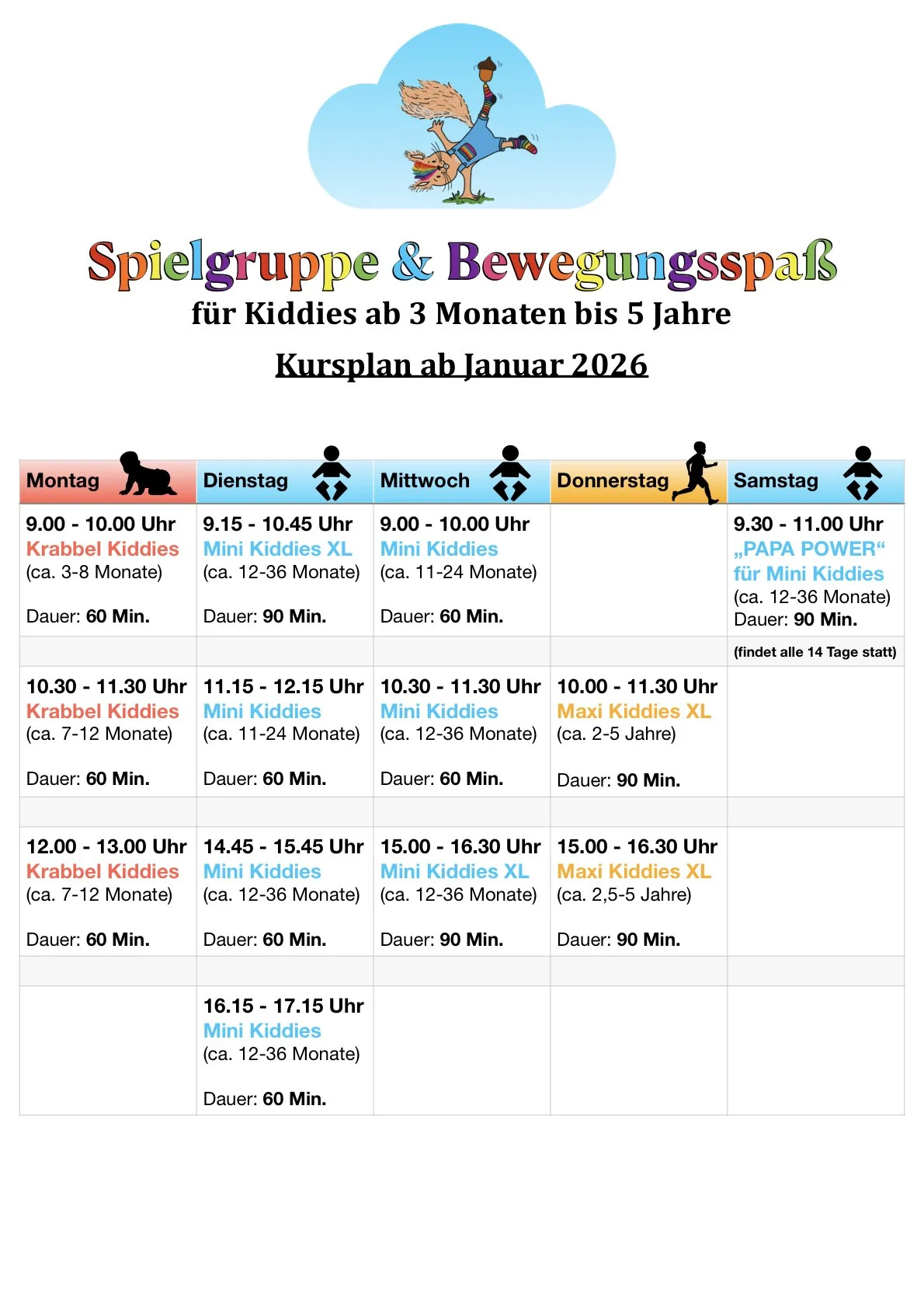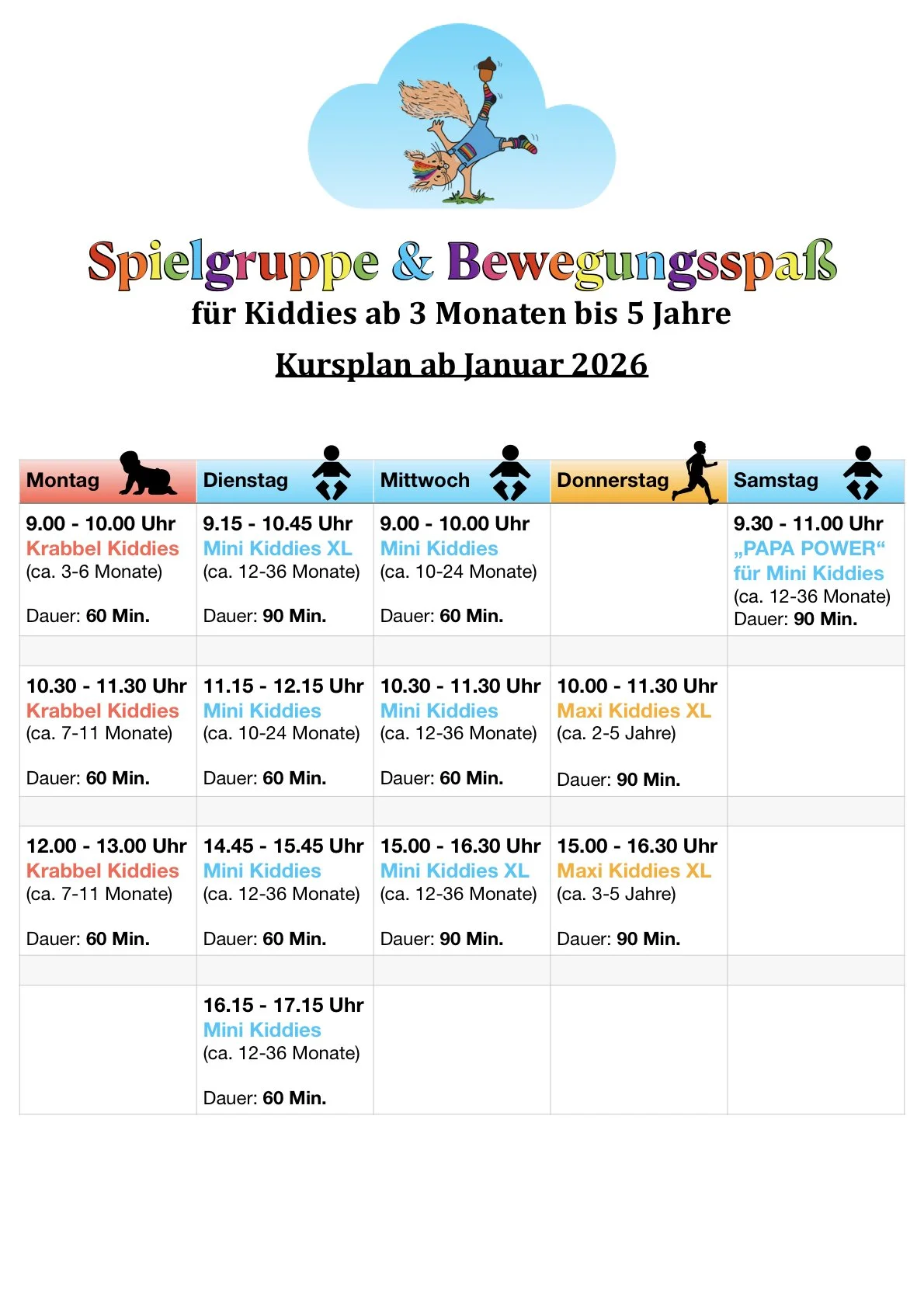 Aktueller Kursplan - Spielgruppen & Krabbelgruppen im Kiddies Mönchengladbach Hier Spielgruppen & Kurse buchen